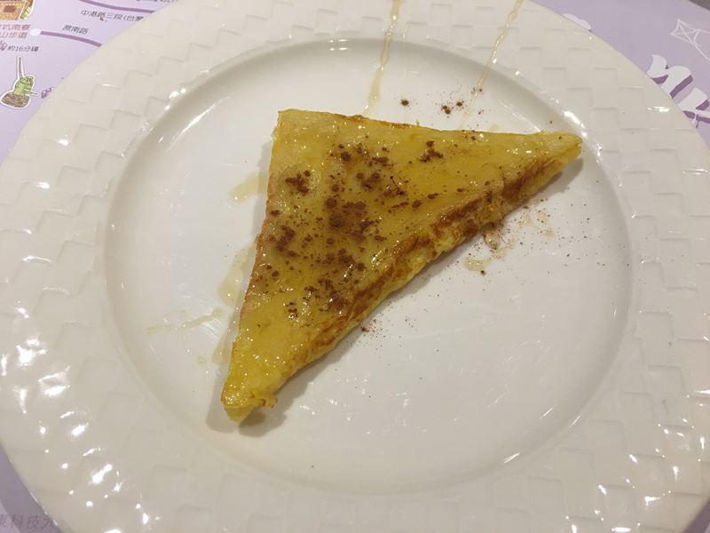 西式蛋餅,很像蛋包飯的原理,裡面包著洋菇與洋蔥,口味比較清淡一點,還不錯吃