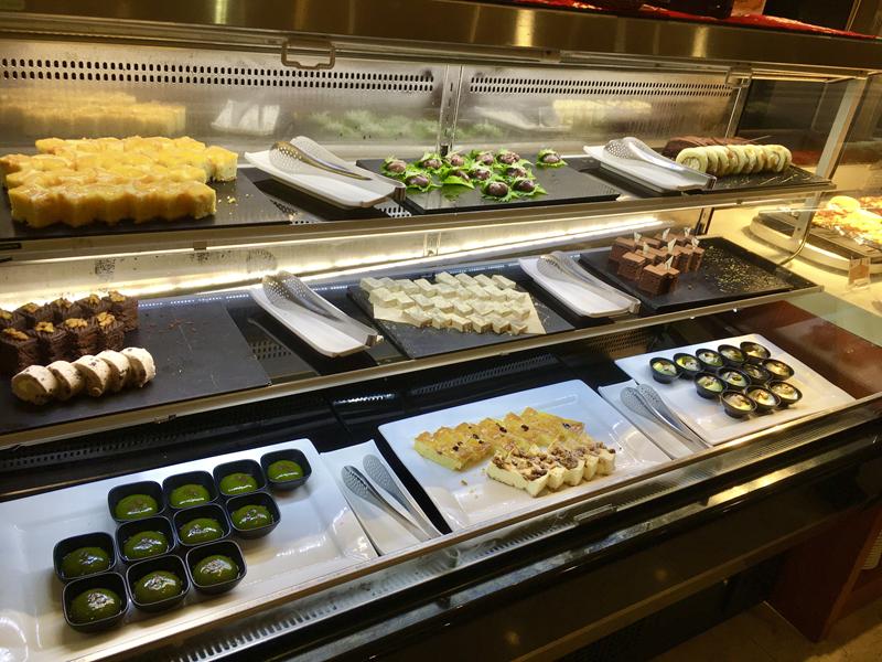 點心櫃裡有許多可口的點心,想吃什麼甜點都可以在這邊拿取