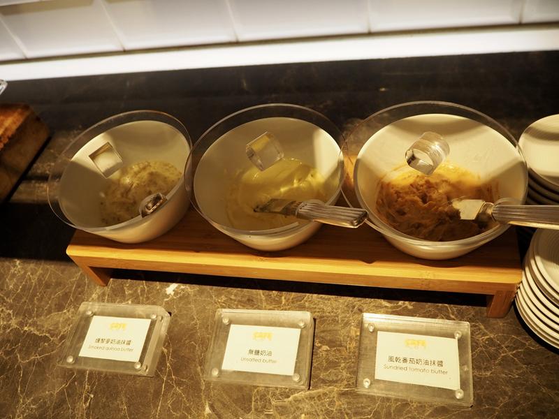 除了有精緻好吃的多道美食餐點,但想吃點簡單的美味麵包在這一區也是有提供,如果覺得單吃有點單調一旁也有:燻黎麥奶油、無鹽奶油、番茄奶油抹醬 與 一些果乾、堅果、起司可以增添風味