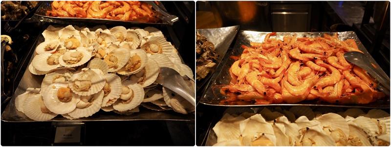 ↑ 蒜辣燻海螺、地中海胎貝、熟白鮮蝦、扇貝