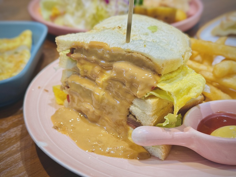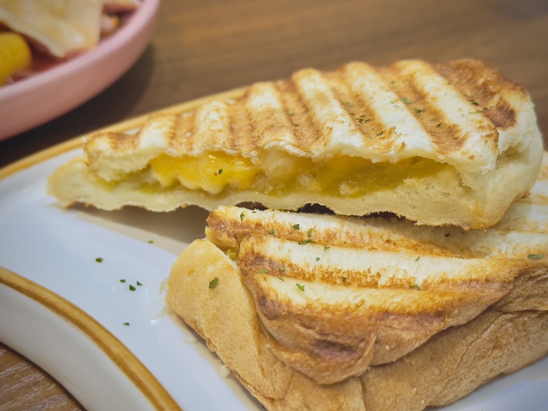 外層熱壓吐司酥脆,內部卻保留了柔嫩的口感,尤其是那滿滿的起司,牽絲效果簡直讓視覺和味覺都大大加分!