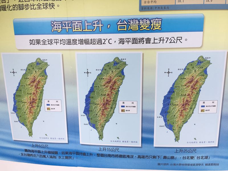 地球平均溫度增幅2度C,台灣海平面將會上升的影響