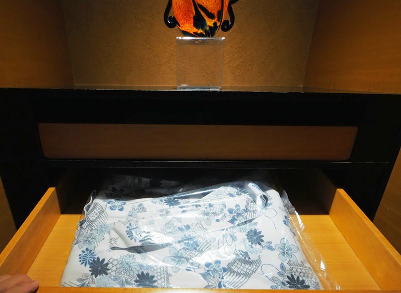 房內有準備用著密封袋裝著的浴衣,春天的浴衣穿起來很舒服,住宿期間可以穿著浴衣在飯店裡到處趴趴走,當天吃晚餐、泡湯、在飯店裡閒晃都穿著這套浴衣 XD
