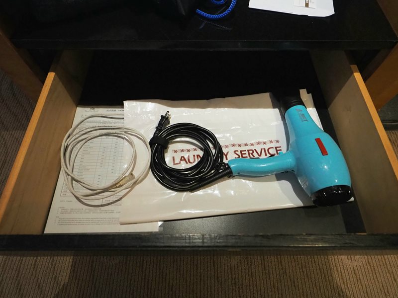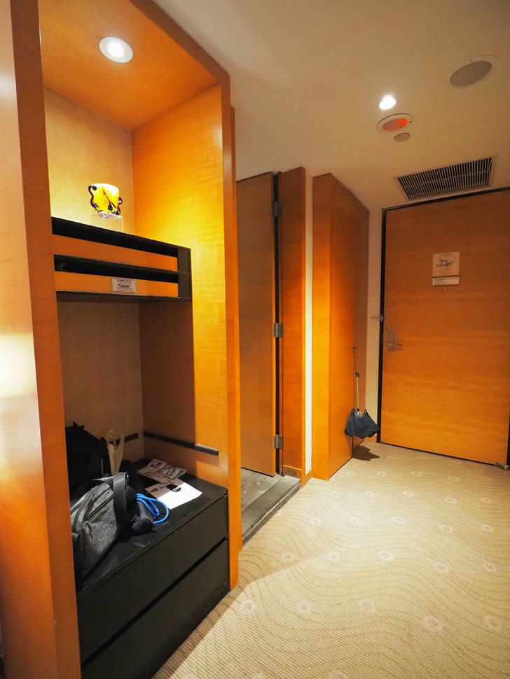 衣櫃在玄關處,一旁的抽屜裡有吹風機以及浴衣