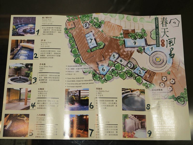 春天酒店主打露天風呂有各種不同的池子:親子戲水池、泡泡池、衝擊池等等多達9種之多,充滿溫泉的硫磺氣味,有著各種不同的溫度,泡起來真的很有fu