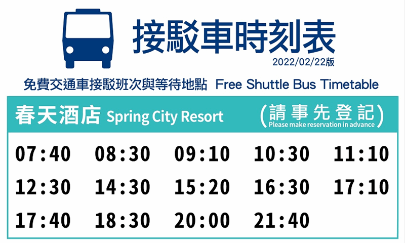 【春天酒店接駁車時間表】←點我