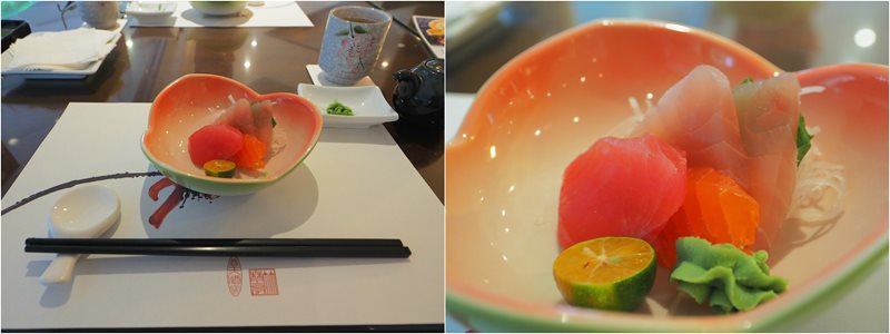 這次入住是使用住宿卷方案,所以提供的是專案配套的單饗套餐,價格1080+10%(房客免服務費),有前菜、生魚片、炸物、主食到甜點,還滿豐盛的