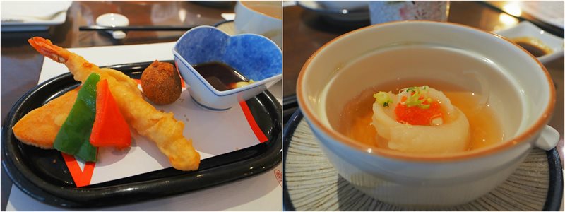 炸物表皮酥脆,搭配一旁的微甜的揚物醬真是一絕,鮮魚捲扎實好吃湯頭鮮甜
