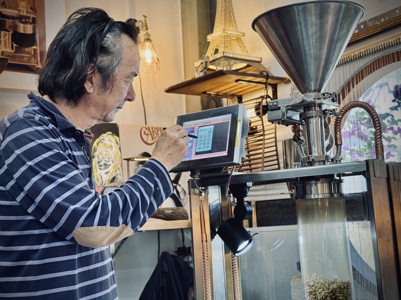 他懷抱著分享健康與純淨咖啡的理念,特別花心思研發了一台獨一無二的烘豆機,甚至還取得了專利