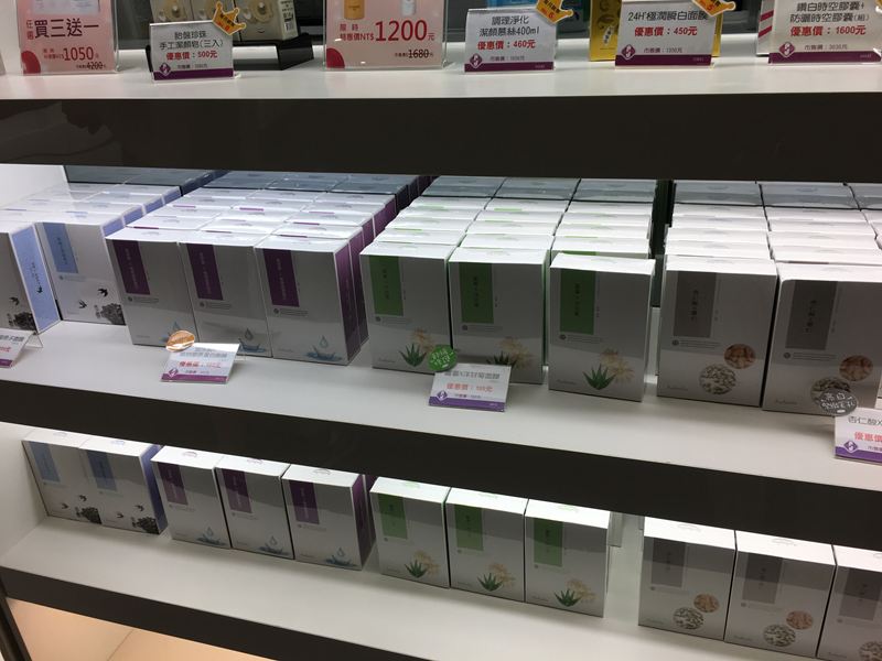 面膜區:鎖水保濕植物膠原蛋白、舒緩修護蘆薈洋甘菊、亮白緊緻杏仁酸薏仁等等的面膜