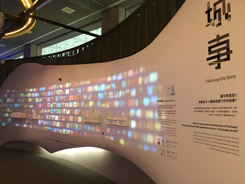 展示著台中各項重大建設、交通網絡、生活人文,當地名特產等……的展示牆