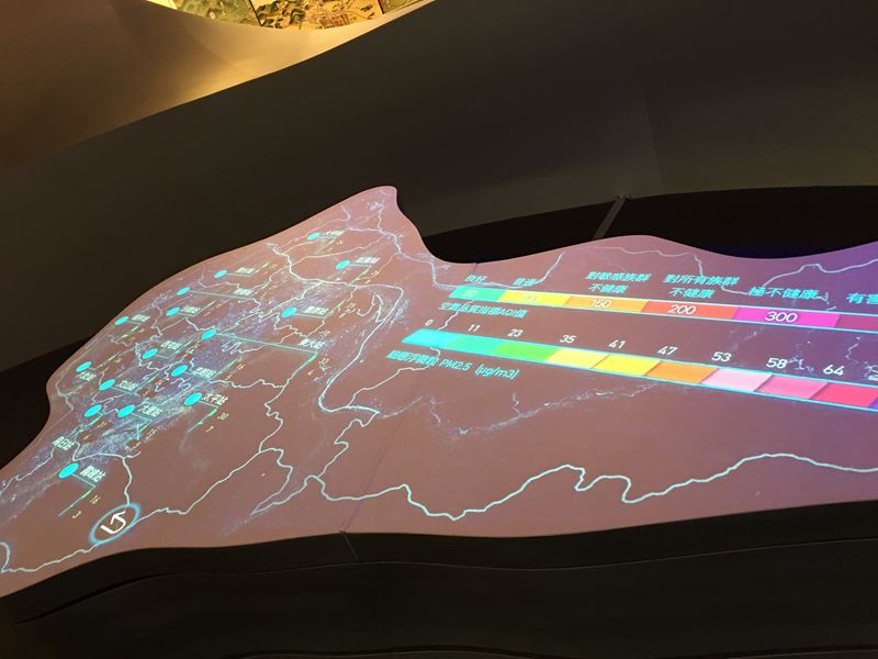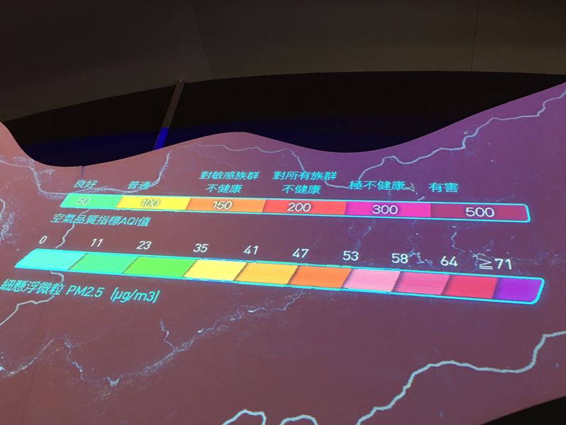 台中當時連日來的大雨,所以空氣品質都顯示,品質佳的藍燈(離開台中願景館後沒多久又下大雨) XD