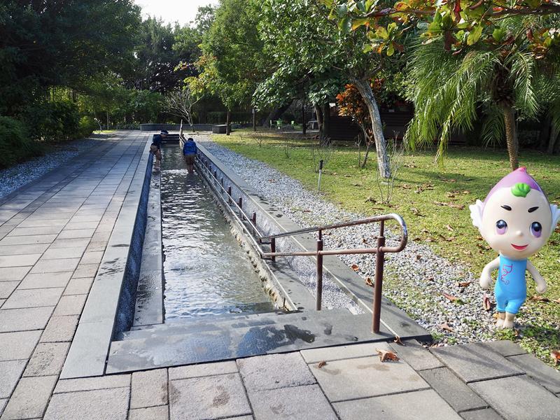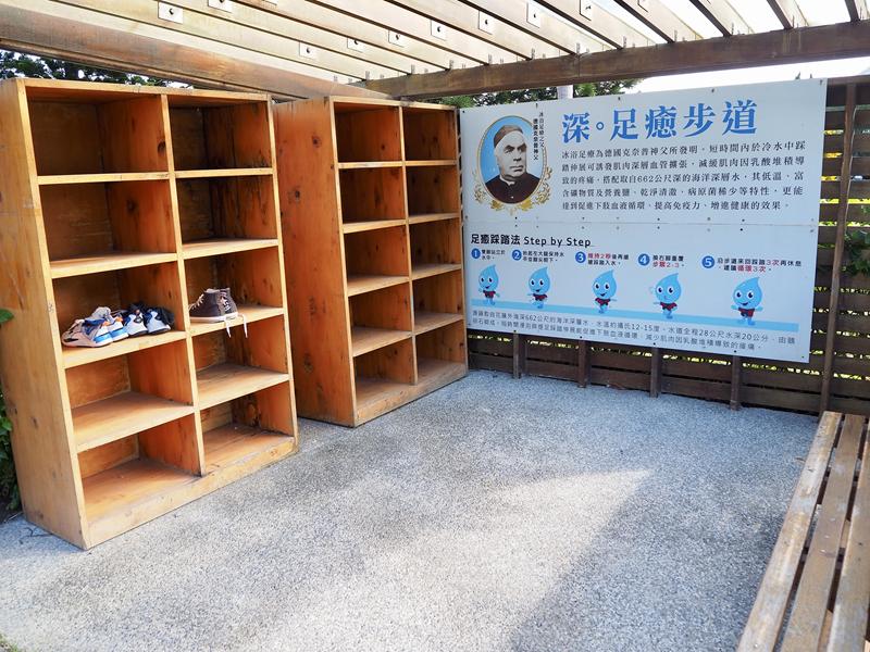 足療是德國一位神父所發行的,搭配取自662公尺深的海洋深層水低溫、富含礦物質、病源菌稀少等特性,踩在全程28公尺水深20公分,水溫度9~11℃的水道中短時間內可誘發肌肉深層血管的擴張,減緩肌肉乳酸堆積造成的疼痛,更能達到血液循環、提供免疫力