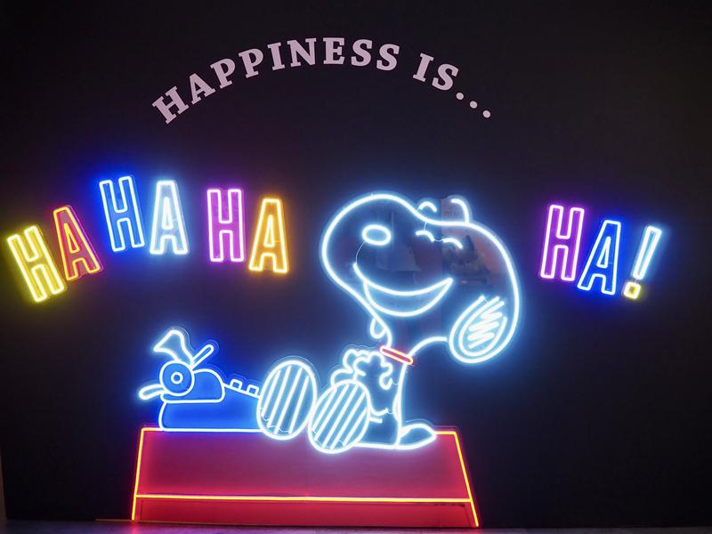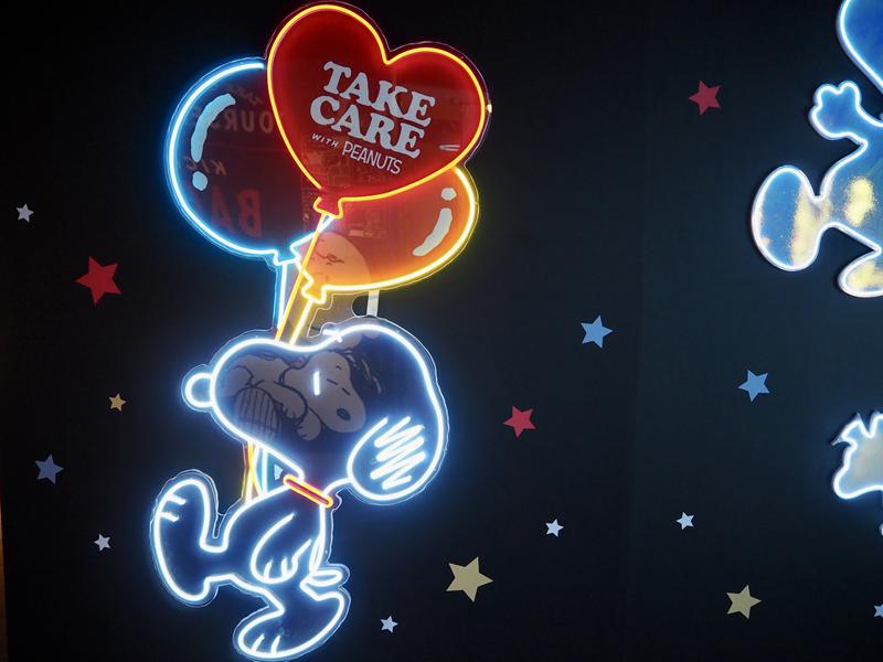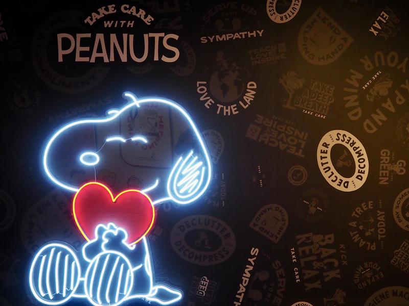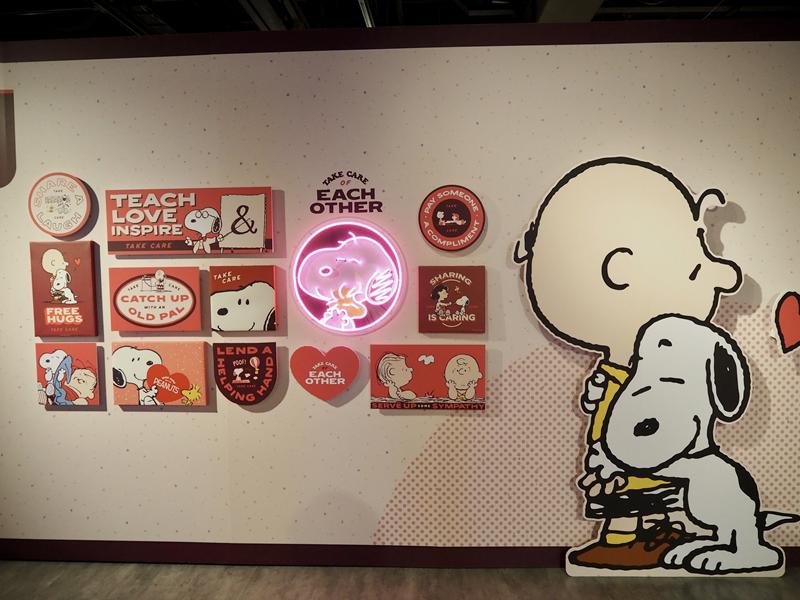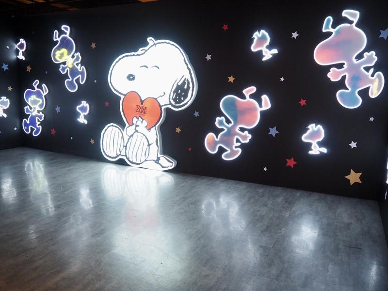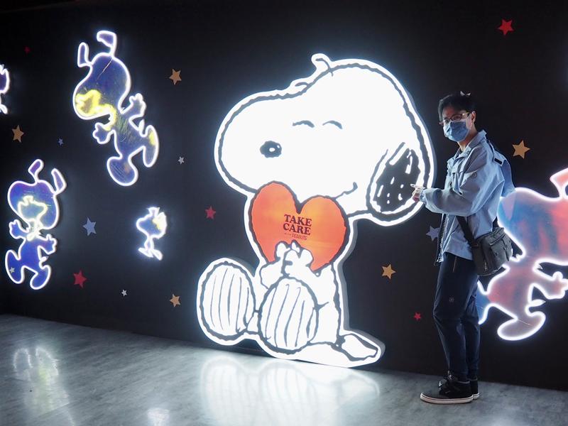 進到展場內真的會拍到手軟,超多場景佈置的可愛又好拍,有漫畫中各種經典的圖樣:史努比在屋頂睡覺、史努比跟主人查理布朗擁抱,互動牆面、超大的史努比公仔、以及LED燈光牆超漂亮!!~真的是拍到手都停不下來