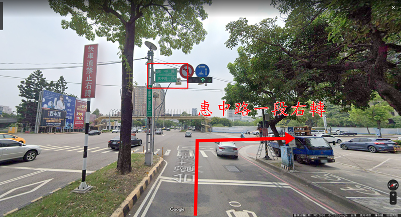 看到惠中路一段指標右轉