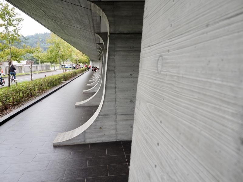 這一個一直延伸的梁柱走道相當好拍,清水模牆形成很特殊的紋路