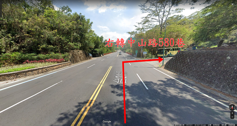 下交流道後沿著台21線行駛看到日月潭後的岔路右轉