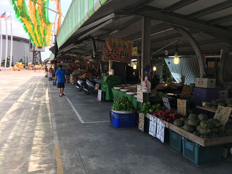 停車場旁有一個攤販區,當天是個大太陽的天氣(很熱)