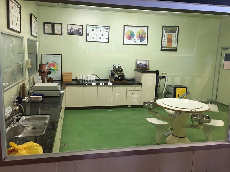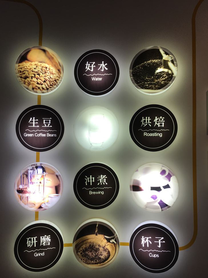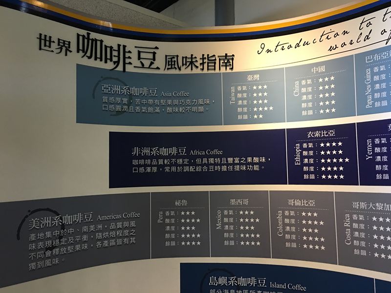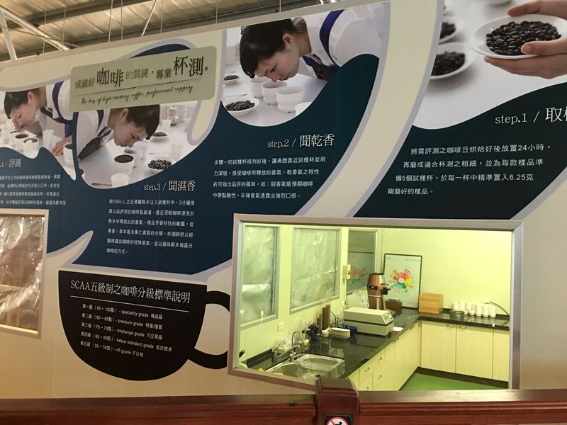 右邊有咖啡實驗室,展示著咖啡分級標準