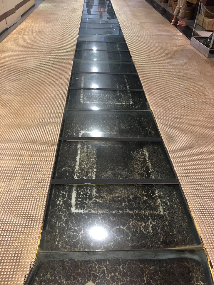 咖啡展售區地上這條長長的玻璃走道叫:黃金曼特寧大道
