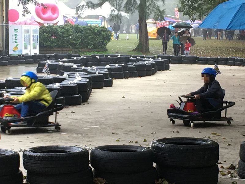 只是這天雨還不小,坐遊園車的時候一直被雨潑到臉,哈!~