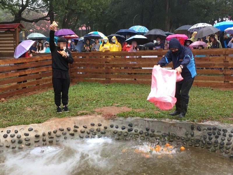 接著一會主持人會開始發橘子,可以用來跟水豚君互動