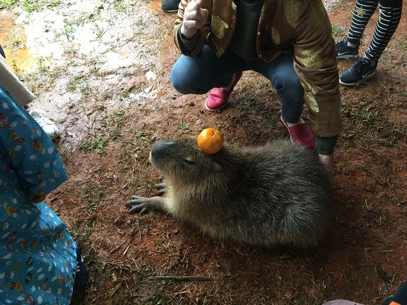 在日本的傳說中水豚君願意讓放你把橘子放在他頭上,你這一整年就會很幸運唷!~