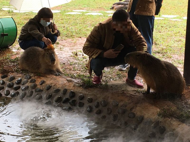 遠遠已經看到水豚君的泡湯池聚集了很多遊客