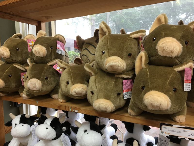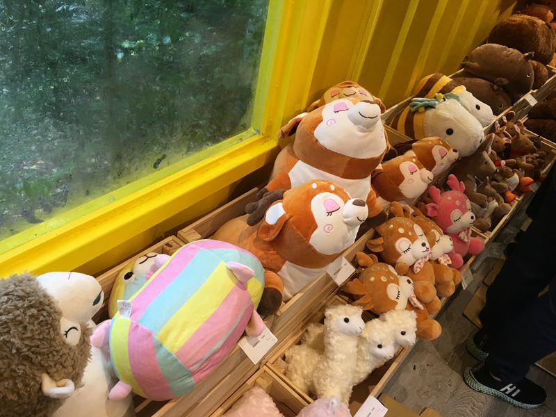 有賣著許多可愛的娃娃抱枕,多以農場內的動物為藍本