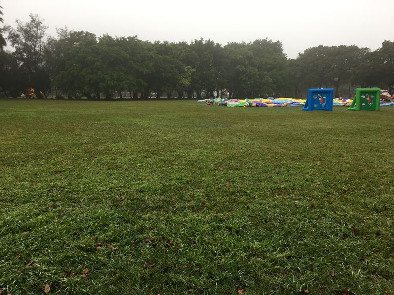 下雨的關係草地都濕濕的保齡球沒人在玩 XD