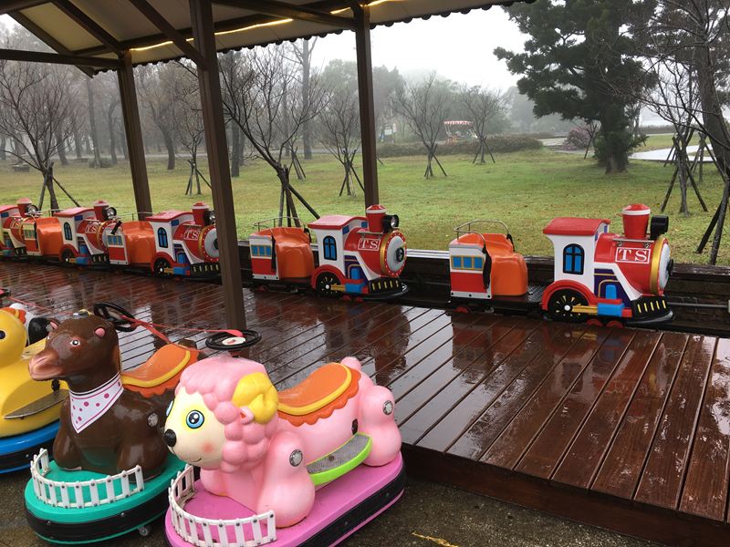 但天氣不佳的關係冷冷清清的,沒什麼人在使用遊樂設施