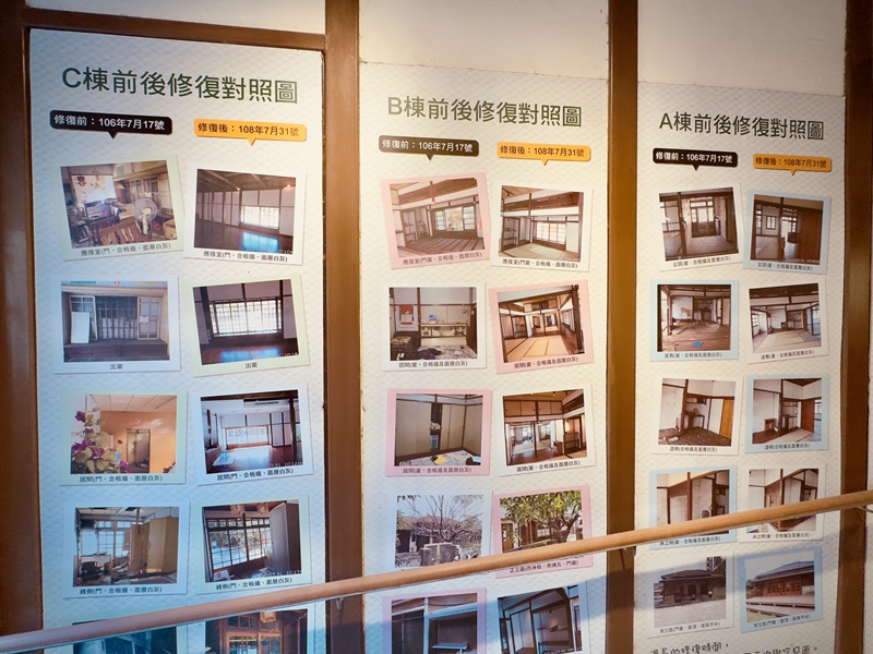 這裡特別設置了一個區域,讓大家可以了解過去的歷史故事,還展示了三棟建築在整修前後的對照圖