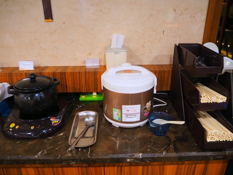取餐區在最後面,熟食、中式清粥小菜、生菜沙拉、吐司、麵包、飲料、咖啡等等的所有餐點都集中在這裡