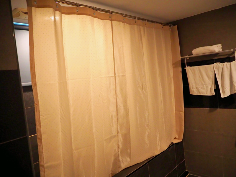大理石的泡澡池空間很大,淋浴間的蓮蓬頭也設計在這裡面,在裡面把腳伸直也完全沒問題,在旅行了一天後以泡澡來結束一天的疲勞是最棒的享受