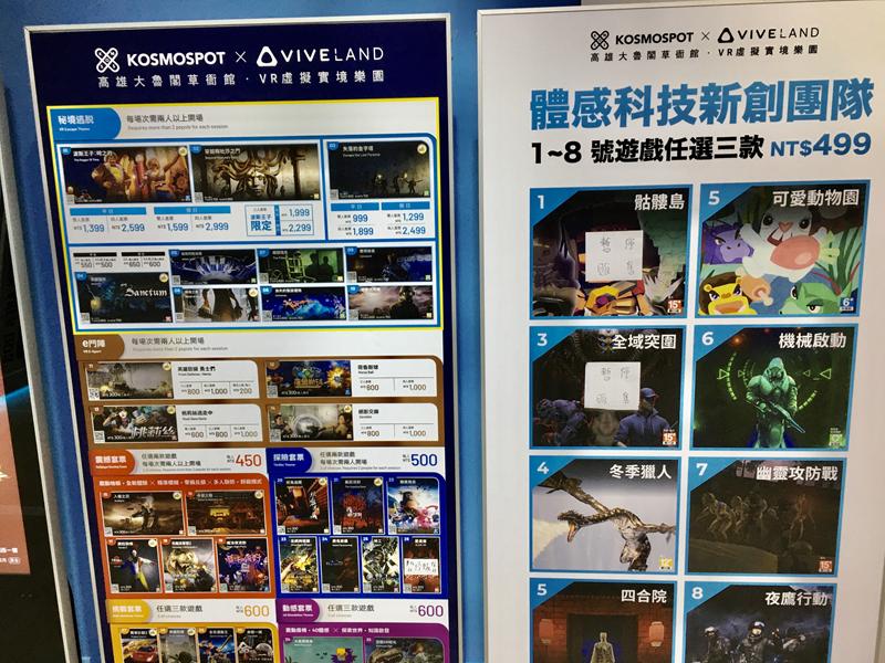 館內有許多的VR遊戲,有雙人套票、四人套票,也有分平日價格 與 假日價格,超多種類的遊戲可以挑選