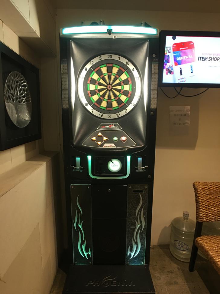 還有附設投幣式的飛鏢機,可以讓你跟朋友同樂打發時間