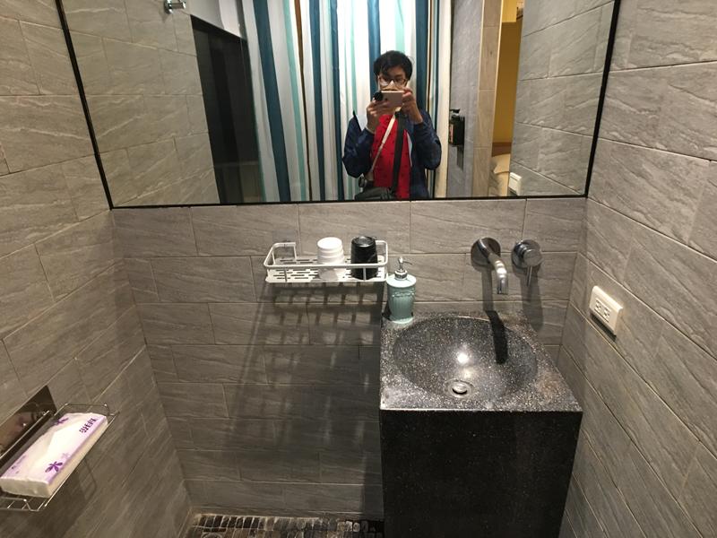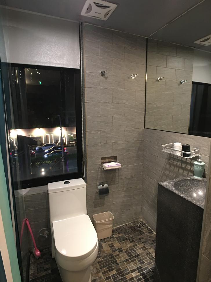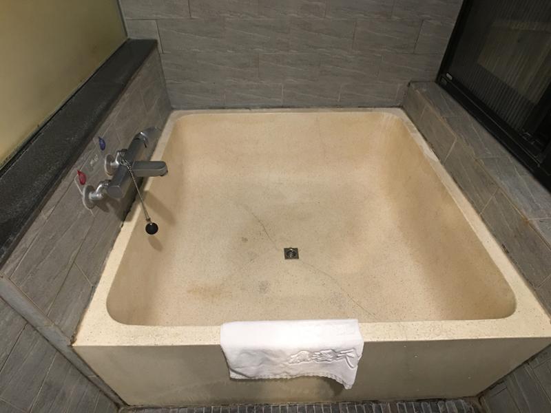 原以為浴室空間這麼小,泡湯池可能也不會很大,結果沒想到還滿大的,在裡面泡湯還可以把腳伸直,而且一旁還有大窗戶可以欣賞窗外的風景,但很可惜我們這次被安排在靠近街道這一邊,據說另外一邊的房間可以欣賞到蘭陽平原的美景