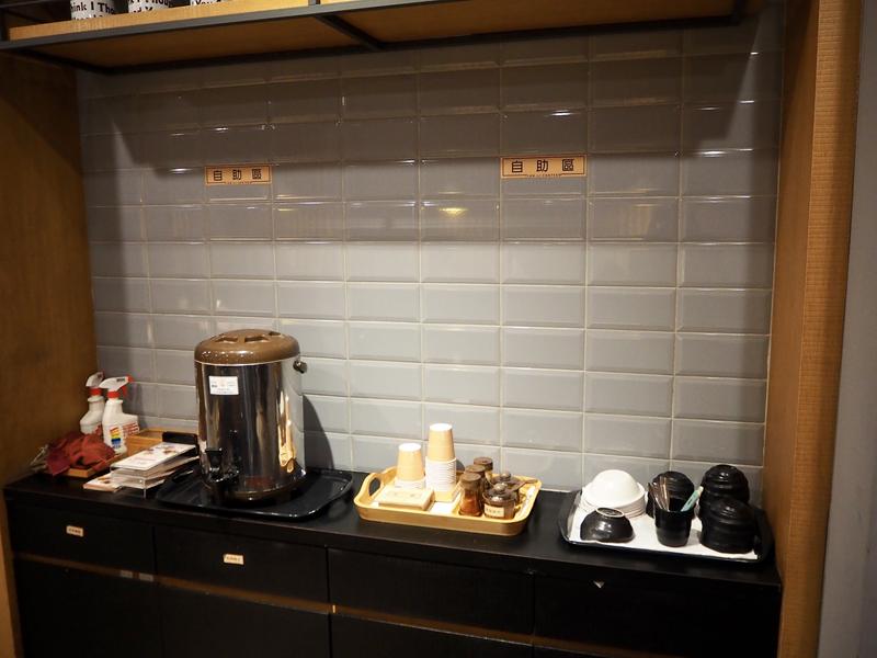 採半自助式的用餐方式,自助區有免費的熱茶可以取用,一旁也有醬料跟餐具