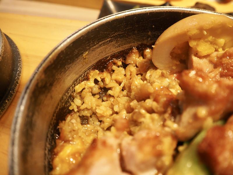其實咖哩飯並不是有咖哩醬,而是飯粒有加上咖哩下去煮,表面有鋪上一層起司底下還可以吃的到鍋巴的口感,雞肉肉質很嫩有,醬烤的香氣很好吃,飯跟雞腿不錯吃,但茶碗蒸跟湯比較清淡一些,屬於比較健康的口感 XD