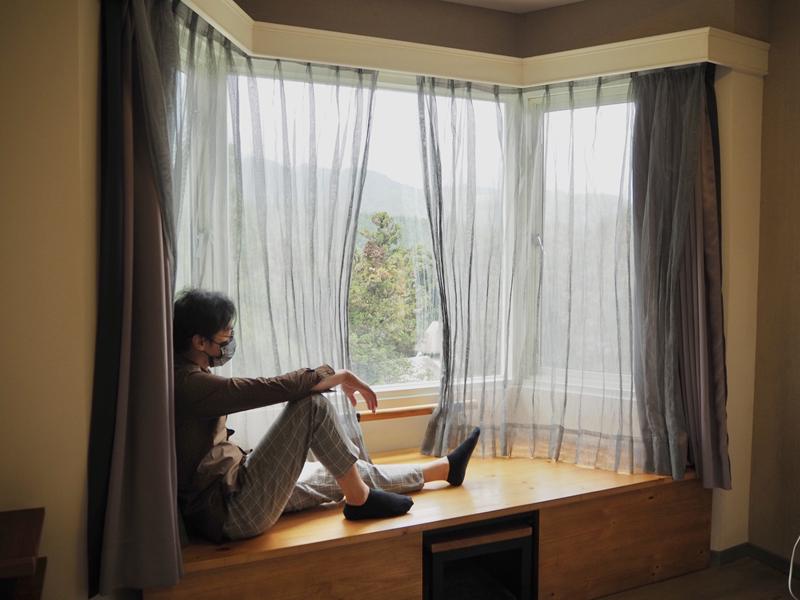 入住於5樓層窗外的風景還不錯,可以看到溪頭的清幽山林,與底下的妖怪村商圈