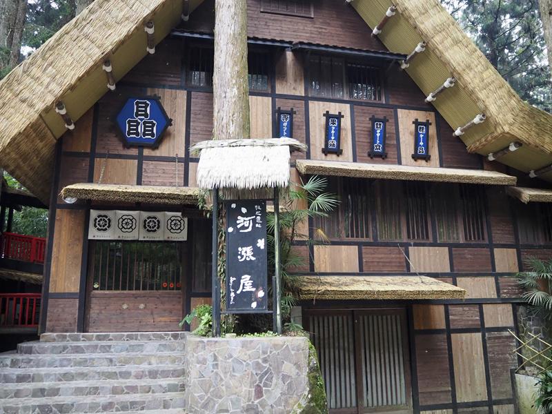 整個屋頂用茅草蓋上去,很有日本合掌村的Fu,這間河漲屋原本是瞐MO-巧克力工坊(現已移到妖怪村商圈內重新開幕)