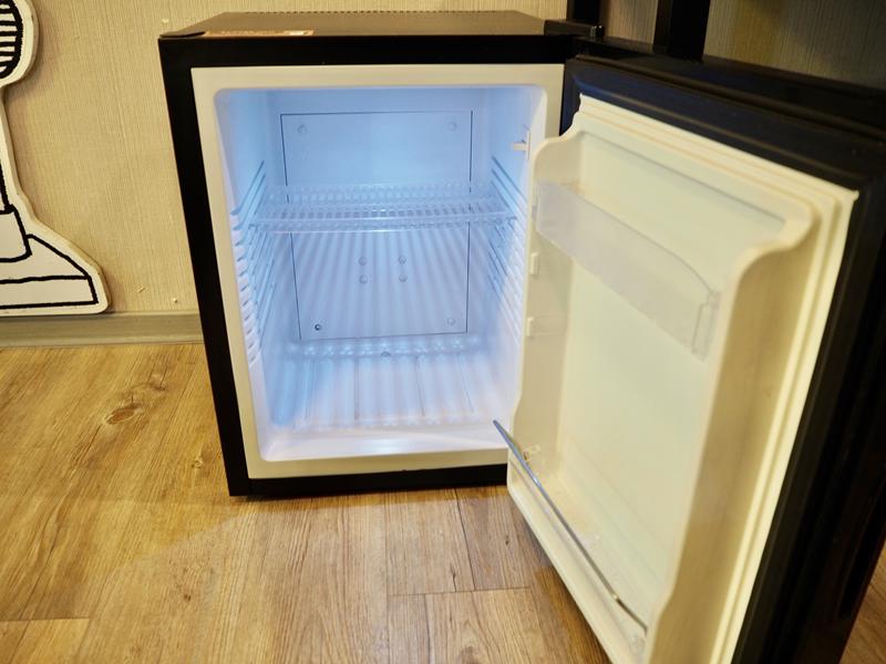 一旁的冰箱裡面空空的,冰箱只能冷藏不能冷凍