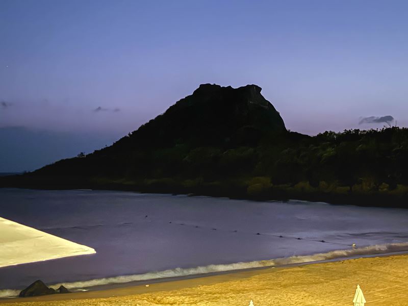 在天色還未暗下來之前還可以看到海浪拍打沙灘的景色,以及前方也墾丁之名景點之一的青蛙石
