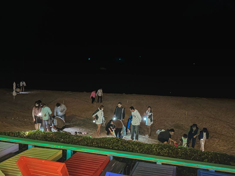 在靜靜聽著海浪聲沉澱一下的時候,忽然聽到後方傳來陣陣的聲響,後來才得知原來是凱薩飯店夜訪沙蟹的活動