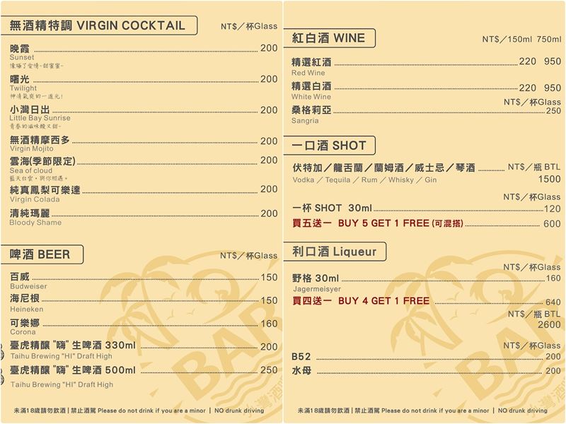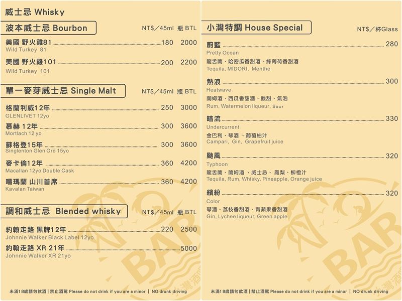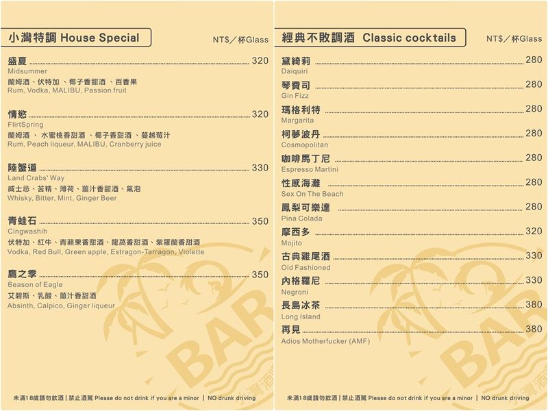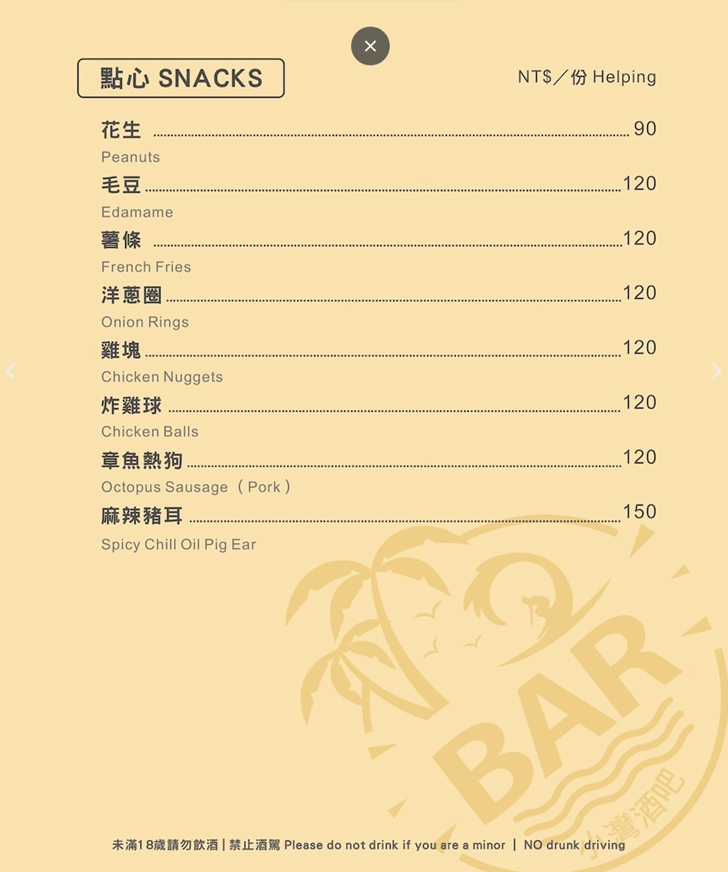 (菜單資訊取自小灣酒吧官網)