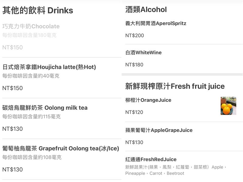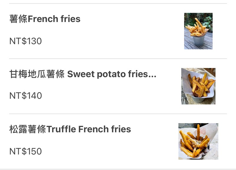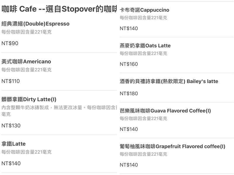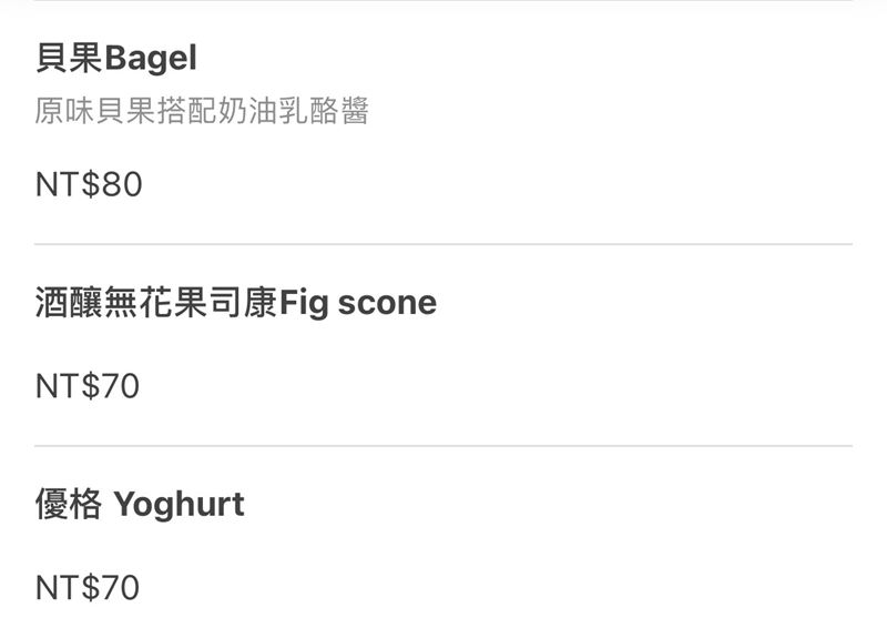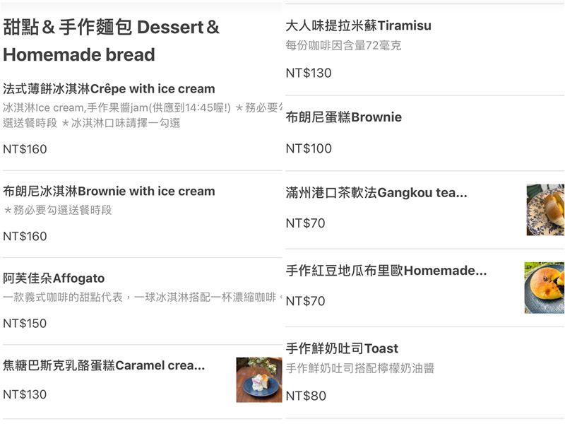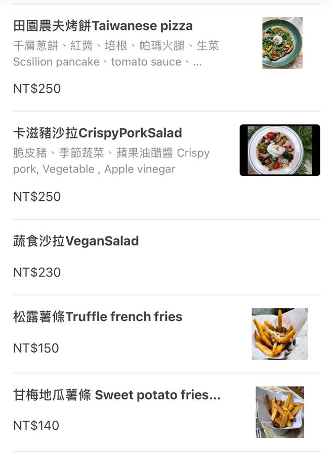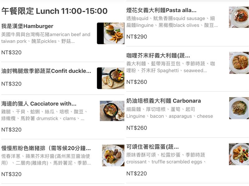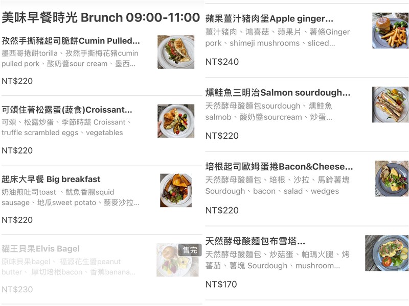 PS:以下菜單是店家點餐系統抓圖僅供參考,可能有些餐點供應時間不同,以用餐當天店家公布菜單品項為主