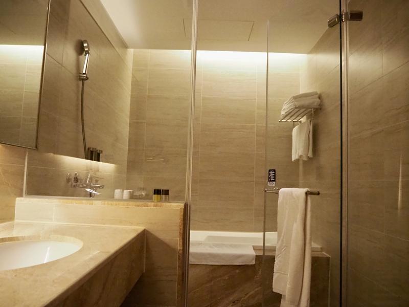 不止房間空間寬敞,連衛浴空間也很大,分成乾濕兩個區域,一邊是洗手台 與 馬桶,一邊是淋浴間 與 浴缸