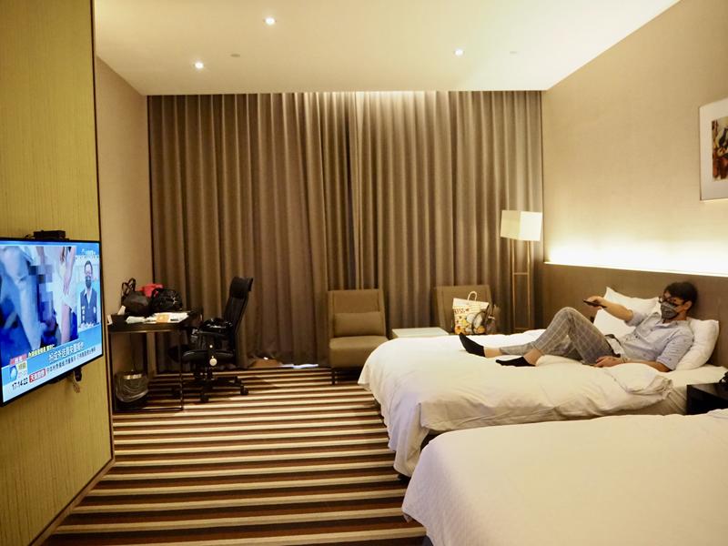 14坪左右的經典雙床客房簡約典雅的設計,空間超大感覺4個人入住也不會擁擠,擺放兩張雙人床還有許多的空間,真的都可以跑步加滾床了 XD