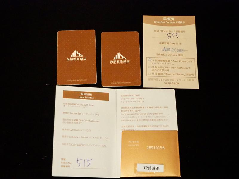 在飯店Check in後可以拿到:房卡2張、早餐卷1張(疫情期間早餐改成餐盒拿回房間用餐)