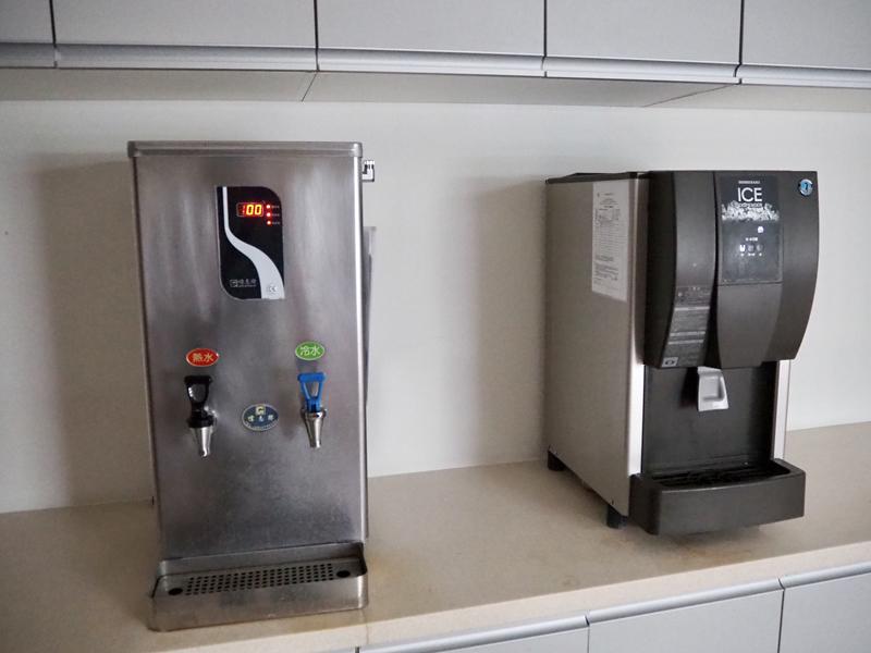 飲水機一旁還有製冰機,洗衣機是投幣式的,飲料機選擇性也滿多的晚上懶的出去,來這裡買飲料也相當方便